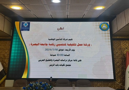 أقامت شركة التأمين الوطنية وبالتعاون مع فرع البصرة ورشة تعريفية لمنتسبي جامعة البصرة في مركز دراسات البصرة والخليج العربي في مجمع كليات باب الزبير وذلك في يوم الاربعاء المصادف ٢٠٢٤/٧/١٠ ، وحضر الورشه السيدة ايمان شياع وكيل السيدة المدير العام والسيد ماهر محسن مدير فرع التأمين على الحياة والسيدة عقيلة محمود مديرة فرع البصره وعدد من الموظفين من الفرع ، تناولت الورشه التعريف بعمل الشركة والوثائق التي تغطيها خاصة وثائق التأمين الجماعي والصحي حيث قدم السيد ماهر محسن مدير الفرع شرحاً وافياً عنها وأبدى المشاركين تفاعلاً ايجابياً معها من خلال الاسئله والاستفسارات التي طرحت من قبلهم واكد الطرفان استمرار التواصل وإقامة ورش مستقبلاً لتشمل كافه منتسبي الجامعة للتعريف بأهمية التأمين ومدى الاستفادة من هذه الخدمة .